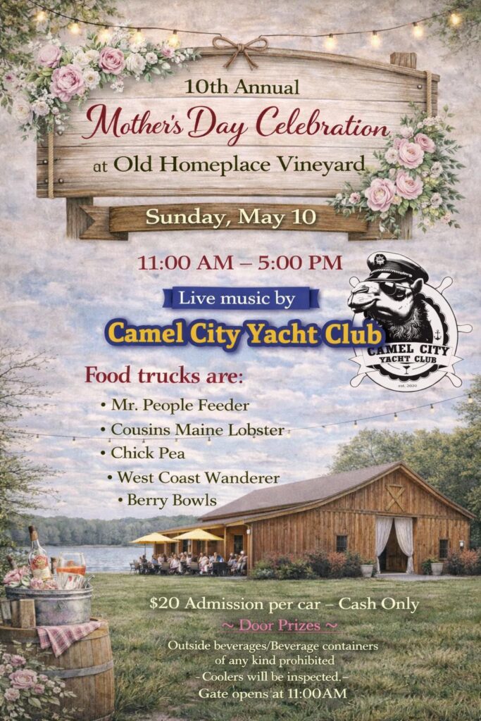 Celebrate the music of Prince with Purple Madness – The Ultimate Prince Tribute Experience live at Old Homeplace Vineyard on Saturday, June 13th. Enjoy an unforgettable night of iconic hits, great wine, and summer vibes. Limited VIP tables available for the best seats in the house—reserve early before they’re gone!
